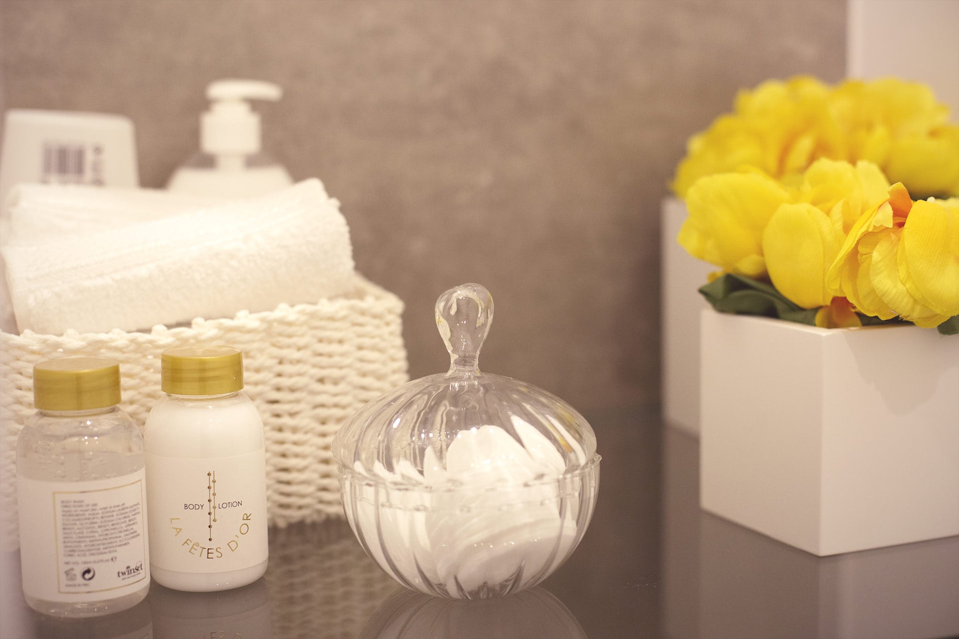 Com ligação para a sala, neste WC de serviço usou-se o amarelo e o padrão chevron, para mostrar essa conexão.
